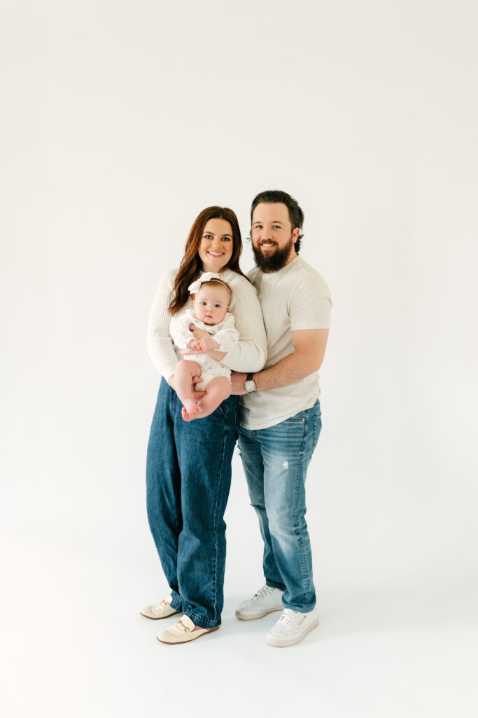 Let’s start with the biggest styling tip: avoid matching outfits. When everyone shows up in the same jeans and white shirts, the camera loses the definition between bodies. Instead of feeling like dynamic family portraits, the group starts to visually melt into itself, especially with darker shades or identical tops.